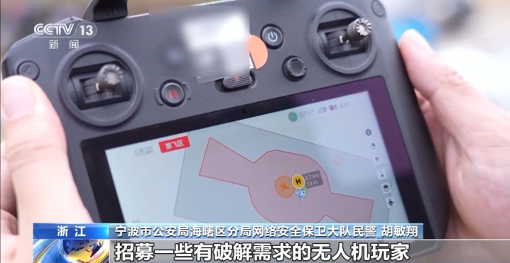 宁波市公安局海曙区分局网络安全保卫大队民警胡敏翔:他们在破解的时候会组建一个群组,群组里面,上游的技术员会发布一些指令,比如说你需要提供无人机,下载好一些适配的软件,然后再由技术员通过远程控制客户无人机的形式给他提供破解服务。