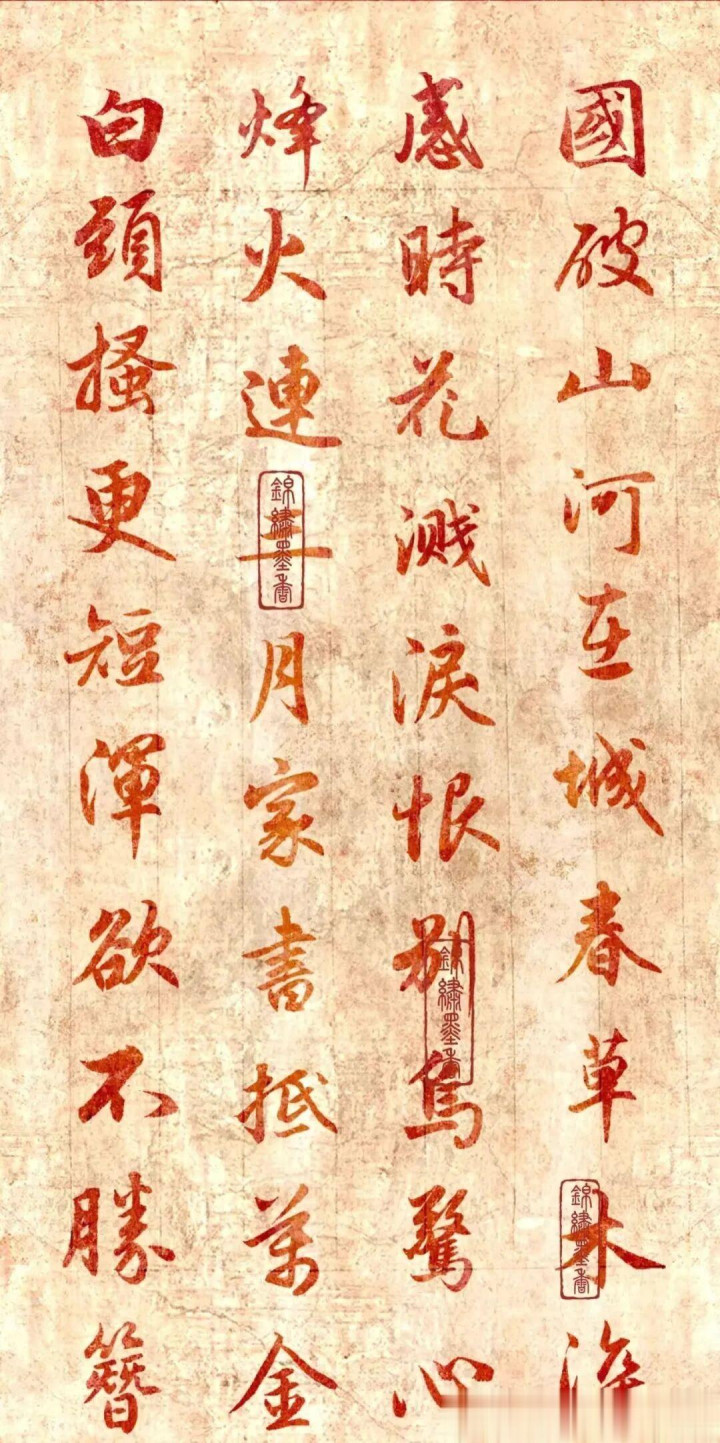 诗东谈主目睹国都颓残、江山依旧却草木丛生的悲惨画面,由战乱带来的花鸟惊心、乡信难觅,表达出对国度运谈的深远忧虑,对破碎亲东谈主的浓烈念念念,以及对自己朽迈、浊世飘摇的无尽感叹,尽显深千里的爱国心扉与千里郁悲凉的情绪。