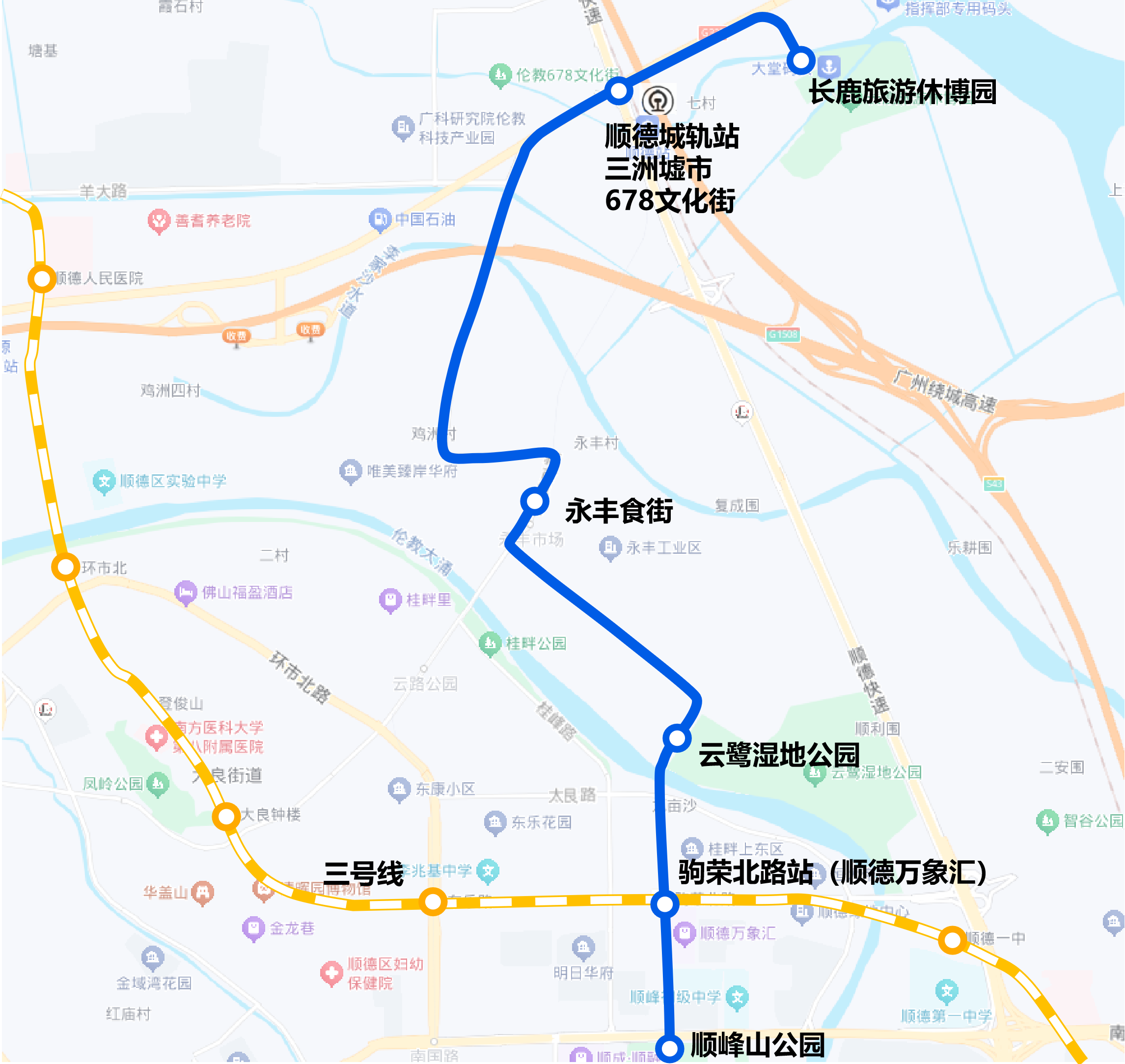 T01凤岭流光·中轴拾趣线(长鹿农庄-顺峰猴子园):串起长鹿农庄、678文化街、顺峰猴子园等精华点,接驳城轨顺德站、驹荣北路地铁站等重要。当今已灵通T01万象汇—顺峰猴子园区间段,桂畔海大桥通车后可全线运营。