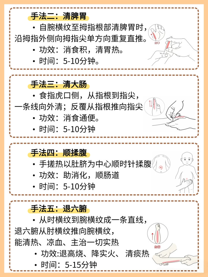 顺时针揉腹。手心搓热,以肚脐为中心,顺时针轻轻揉100下。小宝刚运行揉的时间肚子咕噜咕噜响,揉着揉着放了几个臭屁,须臾兴盛多了。