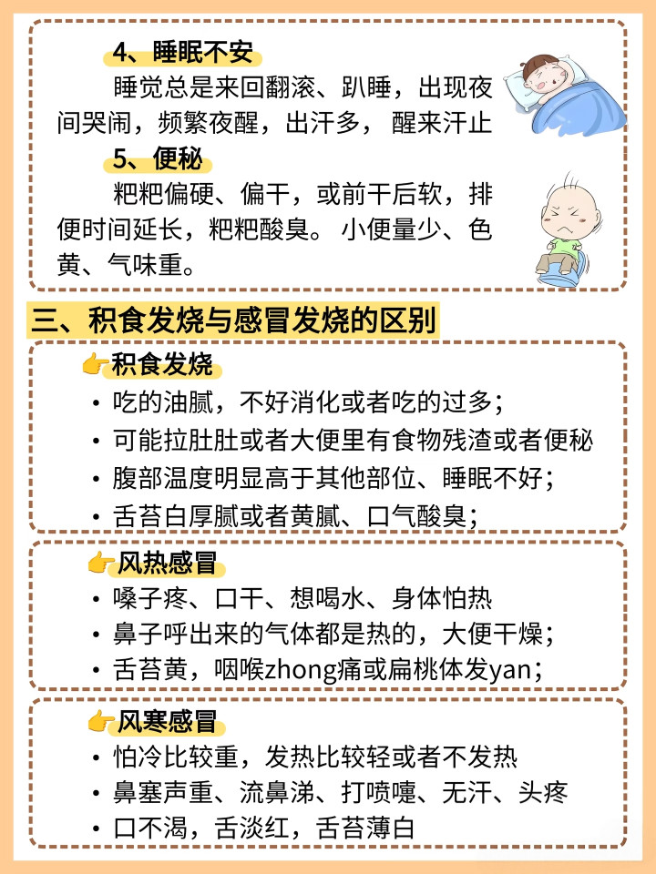 提及来羞涩,天然一经是二胎姆妈,我第一响应照旧“是不是着凉了”。其实仔细不雅察,积食发热和伤风发热别离很明显: