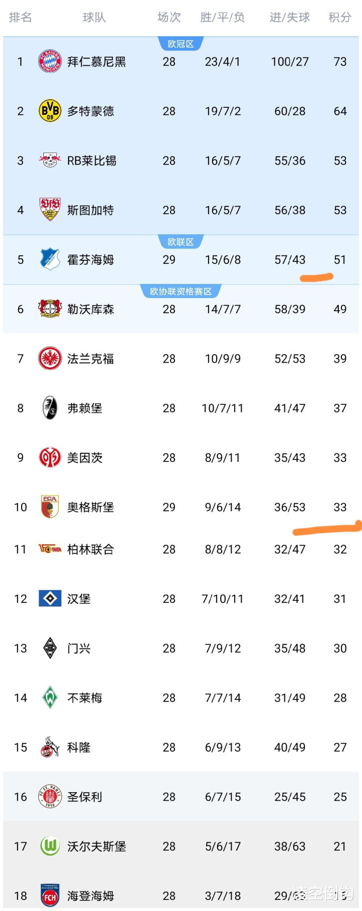 赛后德甲积分榜发生变化,奥格斯堡积分高潮到了33分,反超柏林推敲升至第10,而霍芬海姆积分高潮到51分,持续排行第5,落伍第4的斯图加特队2分。