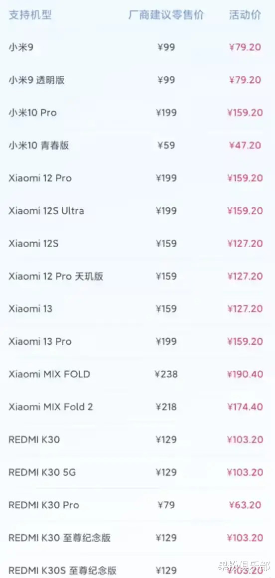 具体价钱方面,像 REDMI 9A/10A 最低仅需 47.2 元就能换一块原装电板。