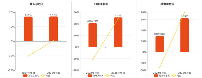 公司买卖总收入为6.50亿元,在已浮现的同行公司中排行第83。归母净利润为1.03亿元,在已浮现的同行公司中排行第58。筹算步履现款净流入为1.74亿元,在已浮现的同行公司中排行第58。